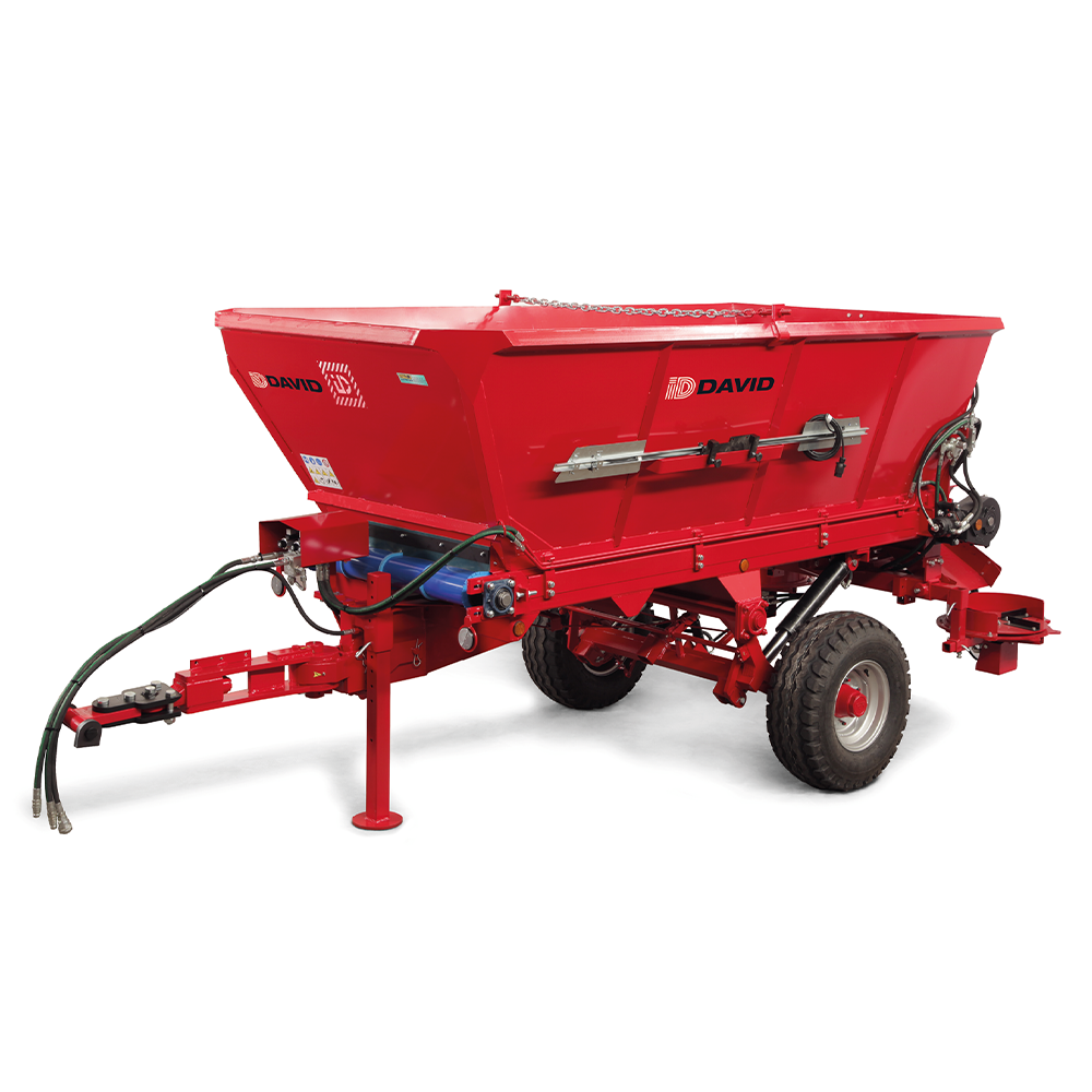 Mineral gübre römorku. 2,5 veya 5 m3 mineral gübre serpme makinesi. Pelet ve granüllerin yüzeysel veya lokalize yeraltı dağıtımı için uygundur