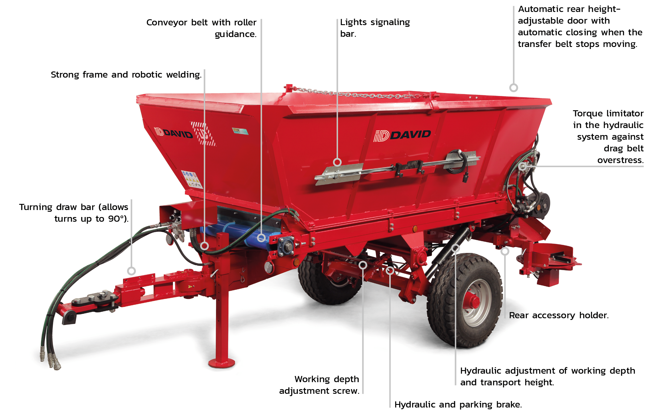 •Çalışma derinliği ve taşıma yüksekliğinin hidrolik olarak ayarlanması.