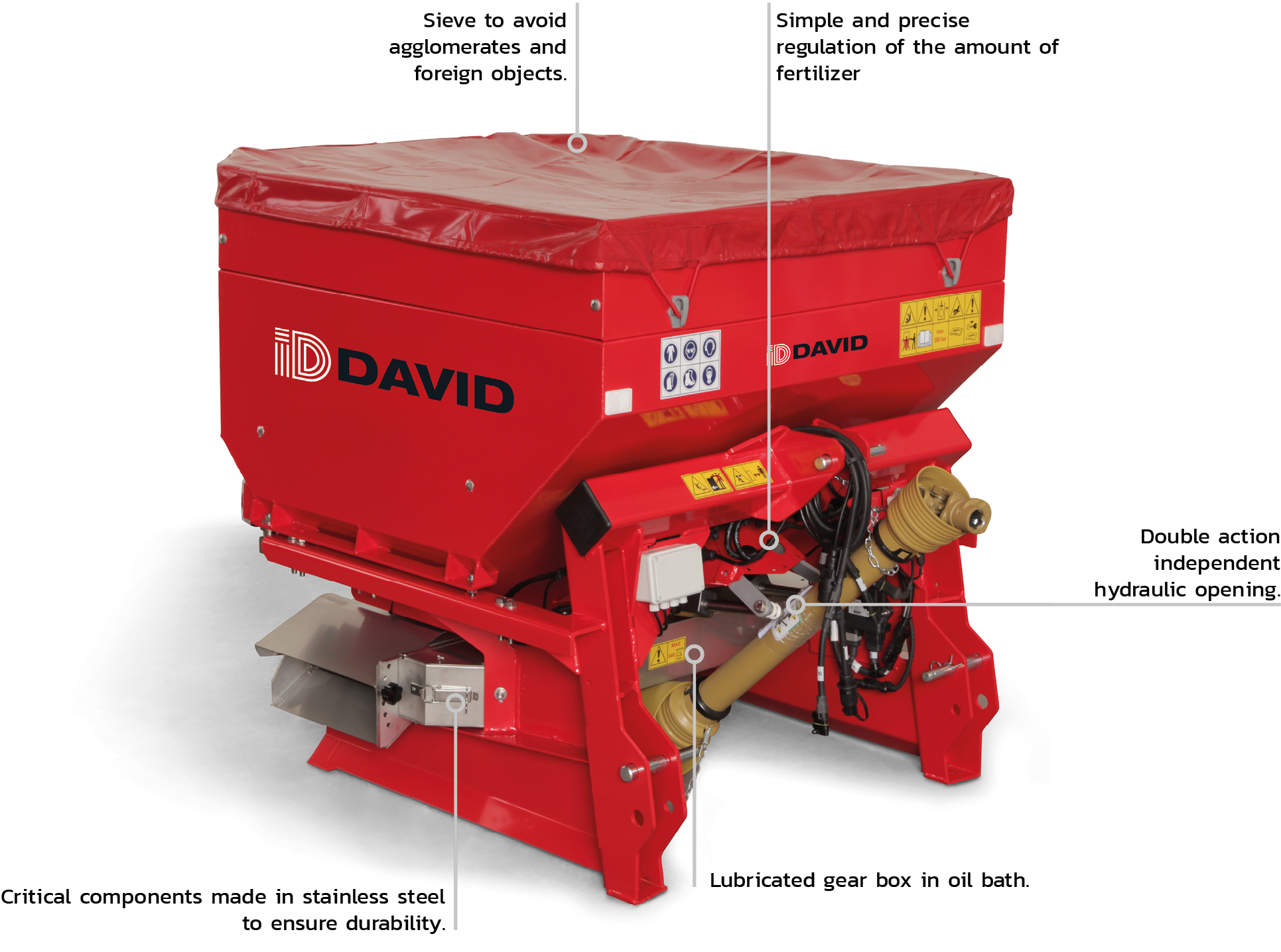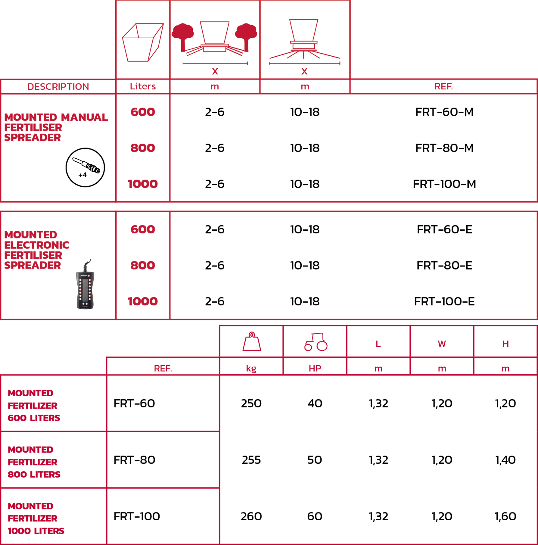 600L’den 1000L’ye kadar hassas montajlı gübre serpme makineleri Kimyasal, granül, toz ve pelet gübrelerin yüzeye veya yeraltına serpilmesi için uygundur.