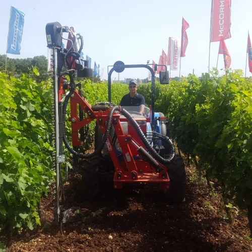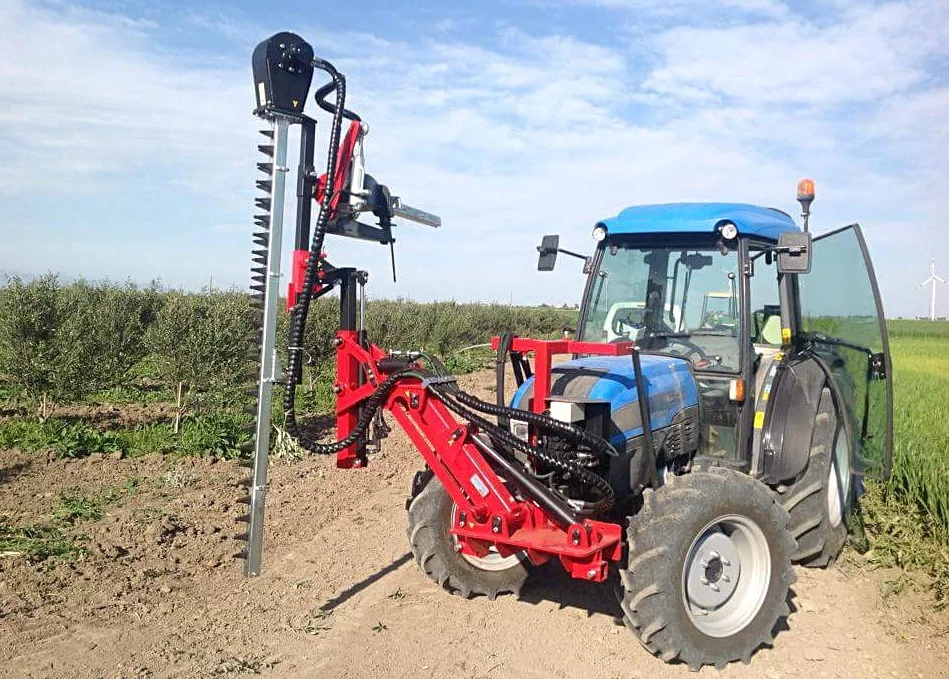 Üzüm bağları ve çitler için L şekilli kırpma makinesi. Küçük çiftliklerde veya yamaç tarlalarında bitkisel büyümeyi kontrol altında tutmak için tasarlanmıştı Üstün çalışma hızına sahiptir, temiz kesim yapar, az bakım gerektir ve kabinden mükemmel görüş sağlar.