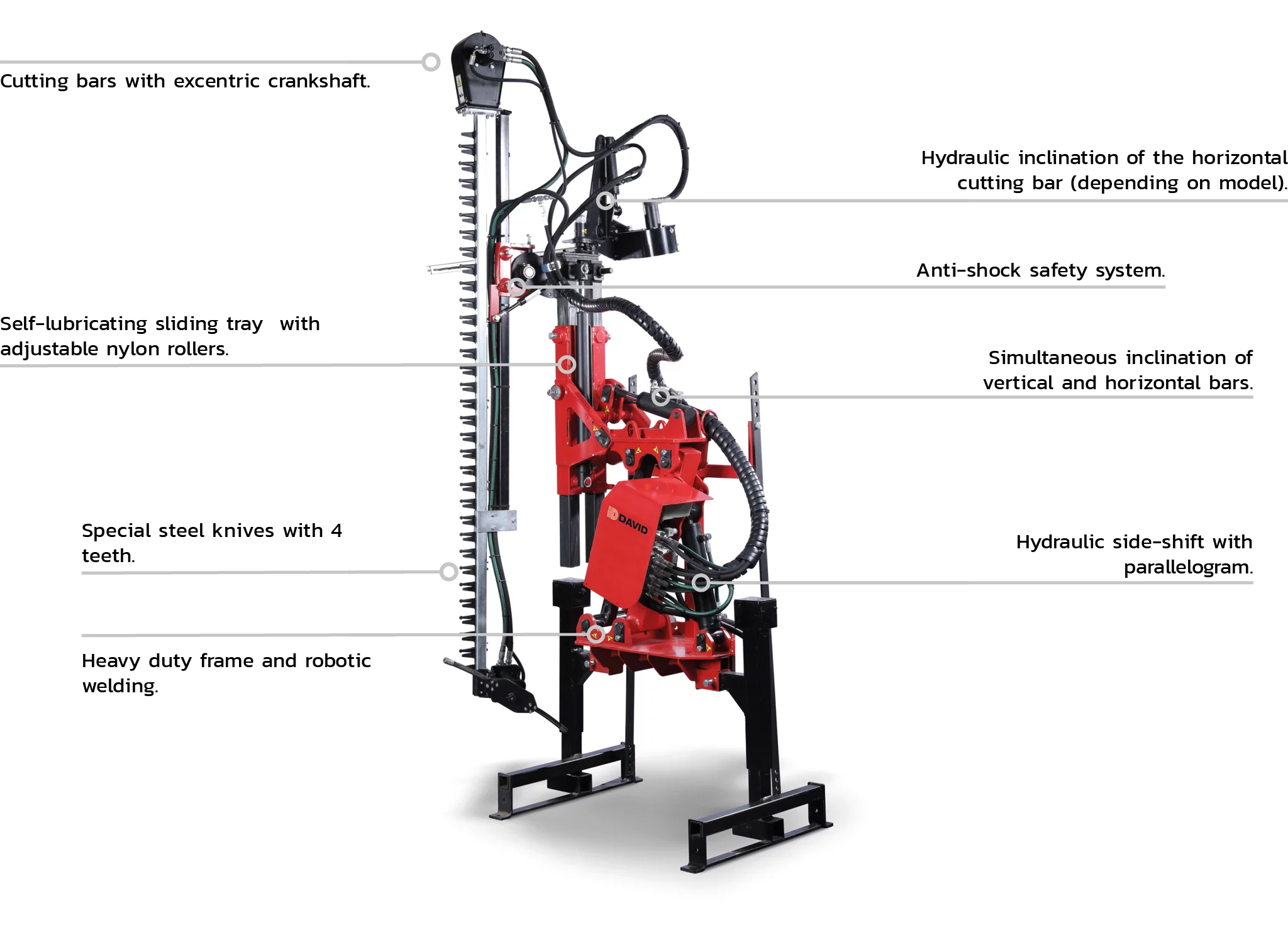 Üzüm bağları ve çitler için ters “U” tipi kamış kesme makinesi. Yamaçlarda veya tepelerdeki sıra üzeri bitkisel büyümeyi kontrol altında tutmak için tasarlanmıştır. Üstün çalışma hızına sahiptir, temiz kesim yapar, az bakım gerektir ve kabinden mükemmel görüş sağlar.