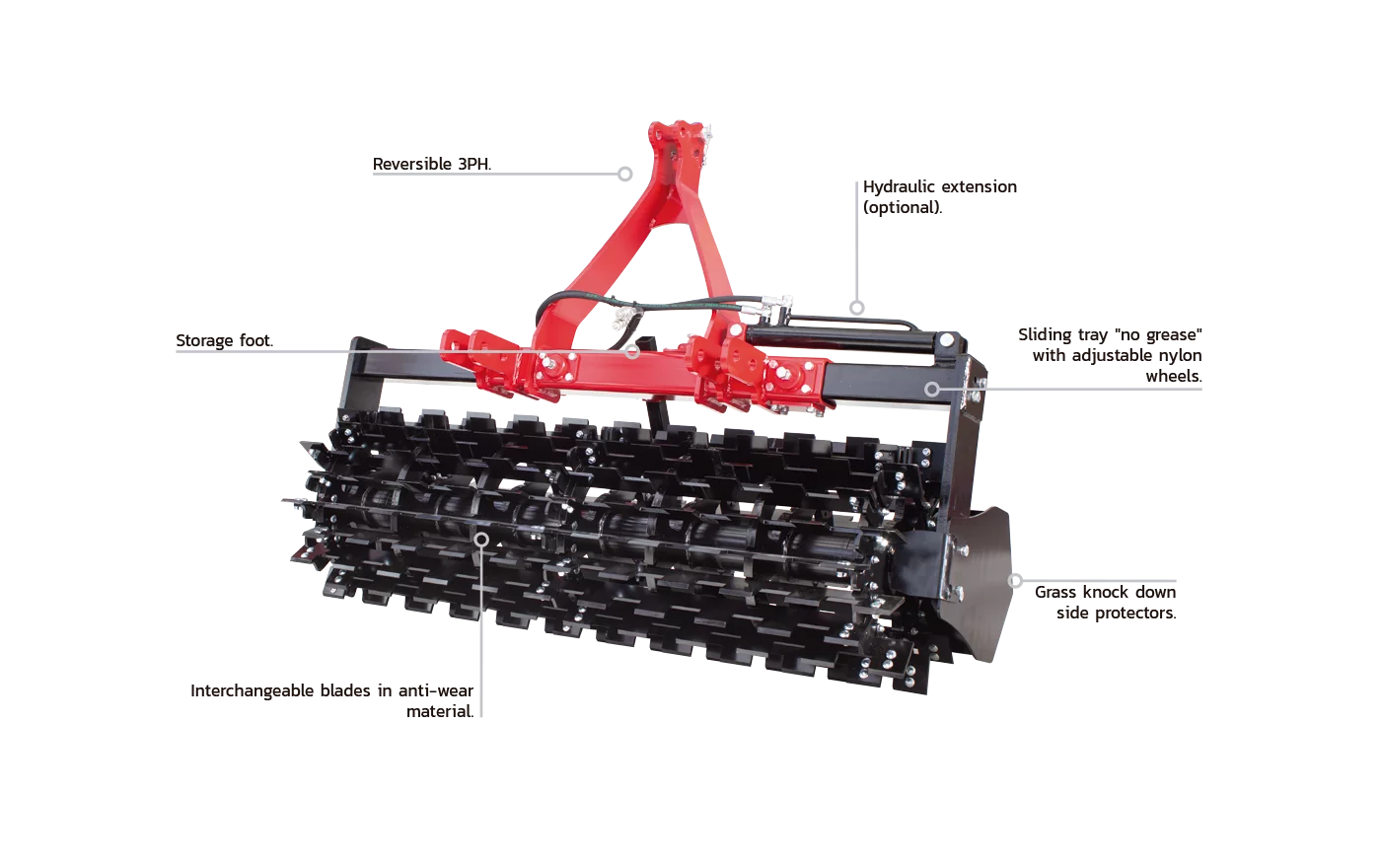 Döner kırpma silindiri. Örtü bitkisini bıçaklarla kesip parçalamak, canlı tutmak ve kesilen noktada yeniden büyümesini sağlamak, böylece bir organik bir örtü bitkisi oluşturmak için idealdir.